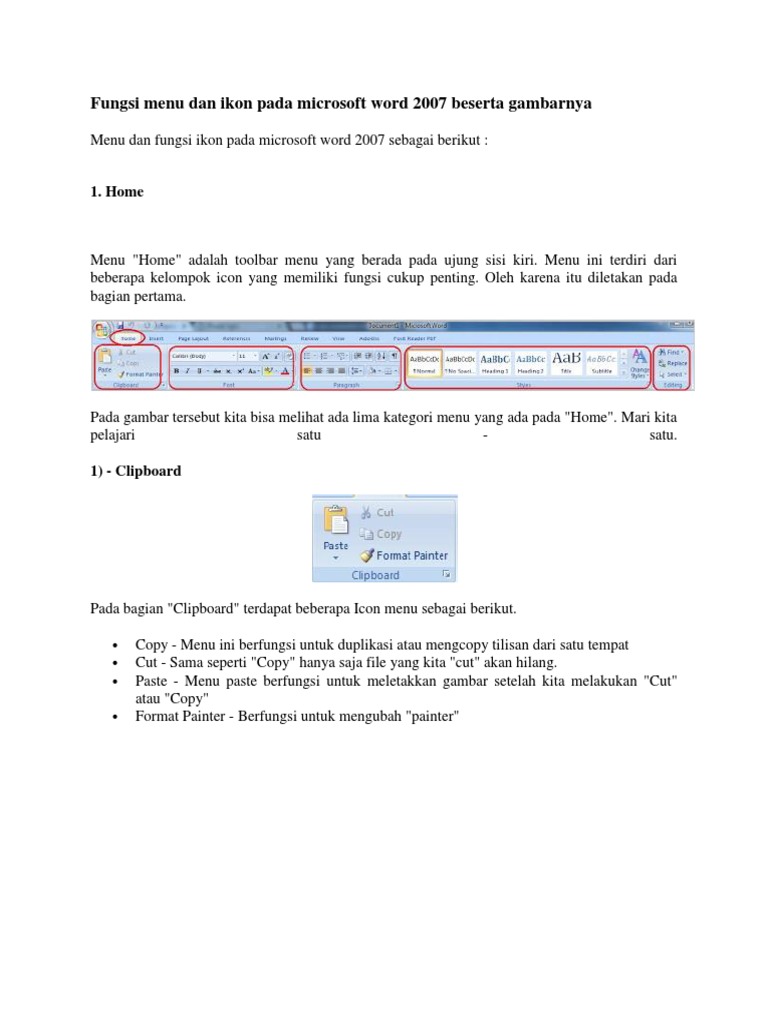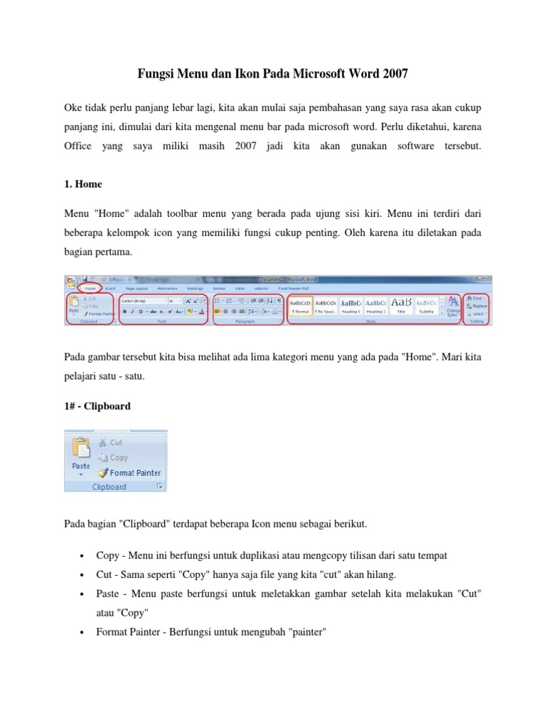 Fungsi Menu Dan Ikon Pada Microsoft Word 2007 Beserta Gambarnya Sinau Komputer